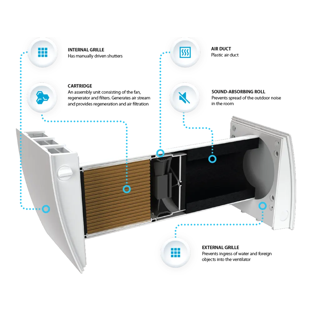 Unidades HRV de una sola habitación con intercambiador de calor cerámico y un caudal de aire de 50 m³/h